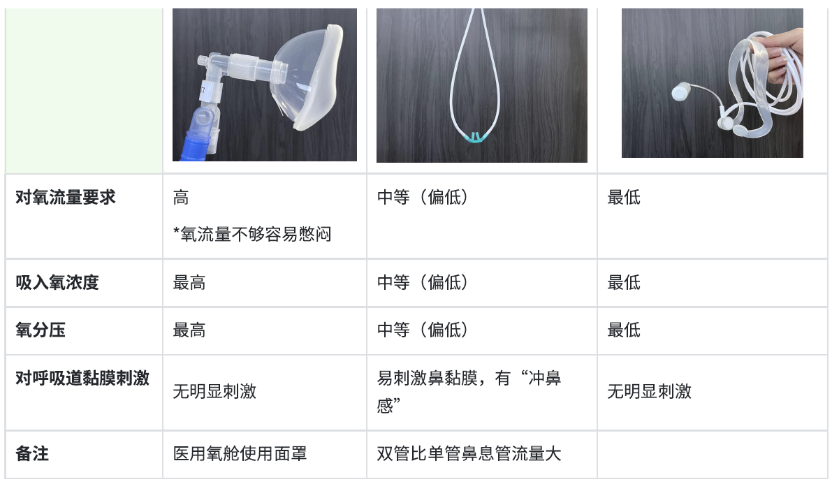 以下为全封闭面罩、鼻息管、鼻麦 三种吸入设备的效果对比,可参考